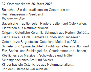 Ostermarkt: Sonntag, 26.03.2023